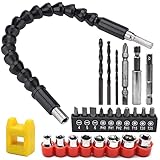 - ☞ Flexible y cómodo: el eje flexible se puede doblar, girar y girar en muchos ángulos diferentes. Se puede utilizar en espacios reducidos, en diferentes huecos, en lugar de taladrar las manos, instalación flexible. Esquinas muertas y otros lugares en los que el destornillador es difícil de trabajar, haz que esta herramienta de extensión de broca flexible te ayude a resolver más problemas rápidamente